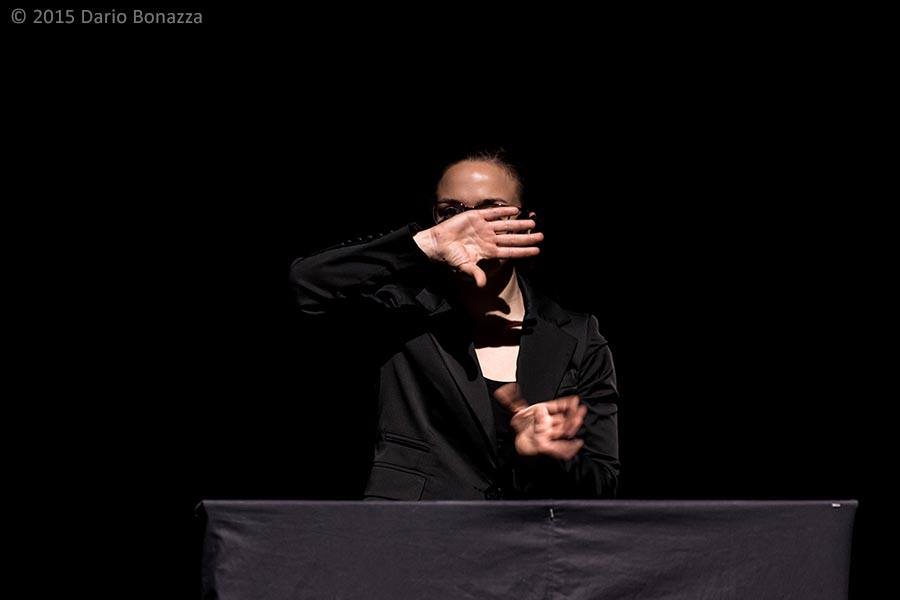 The performer dances along the border between body and language, leaving out the cleft between the subjective body movement, and the universe of linguistic meanings. The movement trys to escape from a surreal and fantastic speech in which emerges the profile of a humanity dedicated to building walls as the major work of civilization. What emerges is a disturbing object loaded of the anguish and the frenzy of the whole society, with which the choreographic score weaves a bond, but at the same time, maybe it’s the quest for delivery to another dimension.